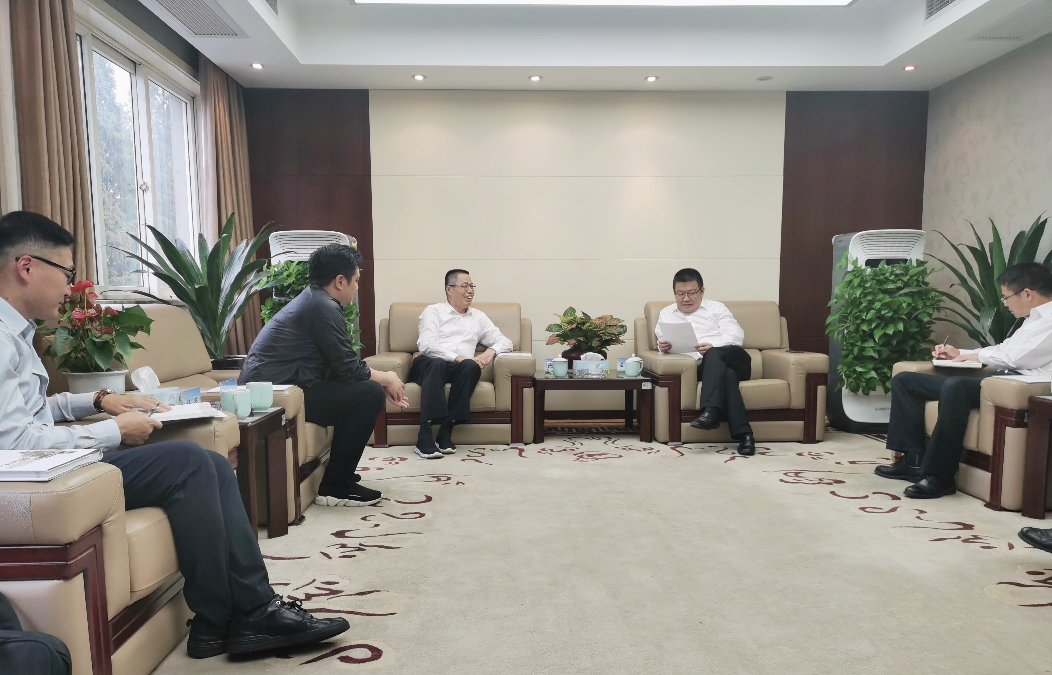 ?7月3日,華成控股集團(tuán)董事長沈鳳飛,總裁沈波,副總裁楊榮,副總裁張韻赴南通市考察土地項(xiàng)目,與南通市農(nóng)業(yè)開發(fā)區(qū)黨工委書記張光平座談,洽談華成湖羊養(yǎng)殖項(xiàng)目落地事宜。